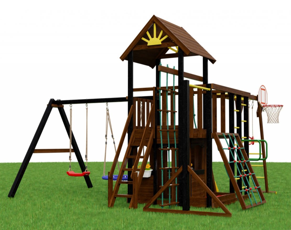 Спортивные модули расположены так, что дети не будут мешать или представлять опасности друг другу. Купить игровую площадку Флорида 6 стоит даже на небольшой участок. При всей своей компактности она очень функциональна и позволит обустроить двор с пользой для детей.
