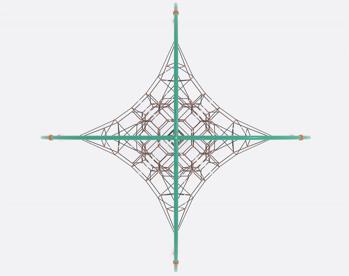 Канатная конструкция серии Globus. Предназначена для установки на детских игровых площадках. Рассчитана для физического развития, гибкости и координации.