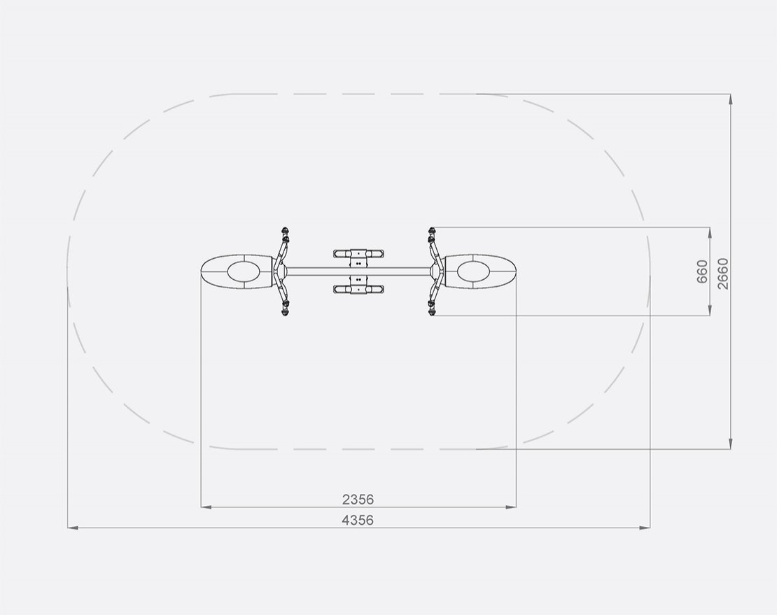 Состоит из металлической рамы, сидений из робинии и пластиковых рифлёных ручек.
