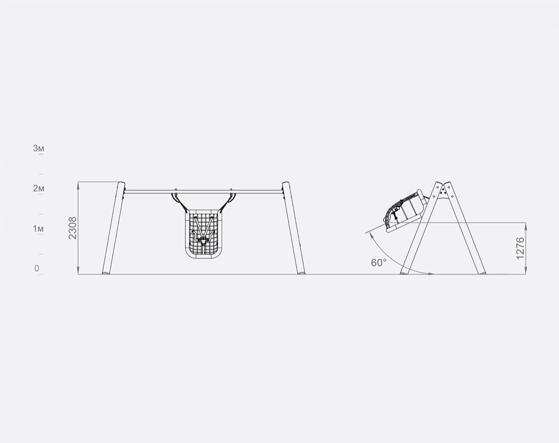 Состоят из опорных стоек, перекладины и сиденья «Гнездо». Для большего комфорта, на подвесах установлены пластиковые ручки.