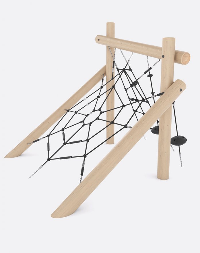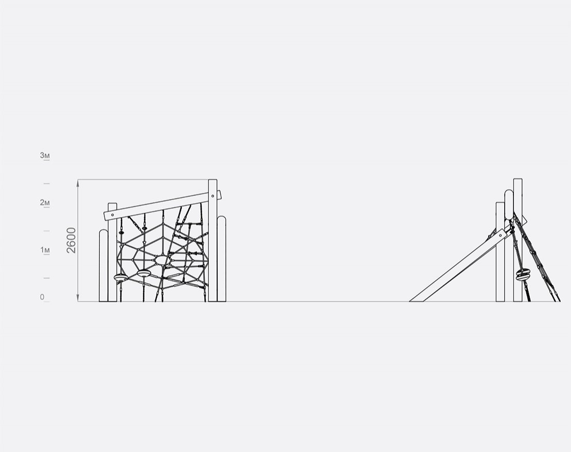 Состоит из опорных стоек, перекладин и канатной сетки с уступами.