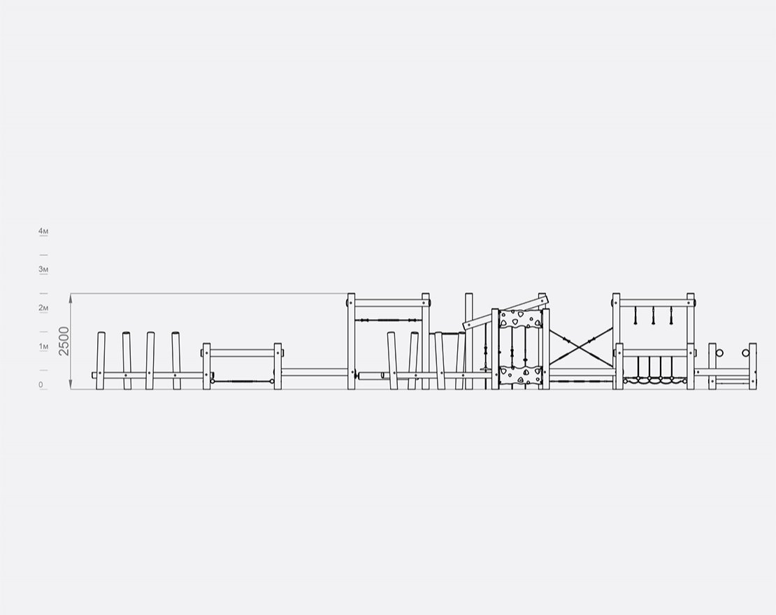 Представляет собой полосу препятствий. Состоит из опорных стоек, перекладин, канатных сеток и строп с пластиковыми уступами.