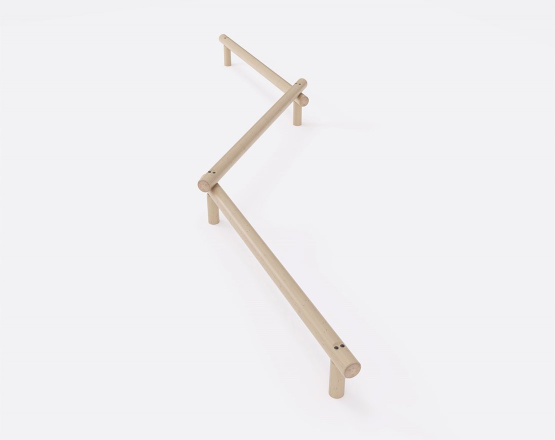 Состоит из опорных стоек и перекладин. Крепежные элементы закрыты заглушками.