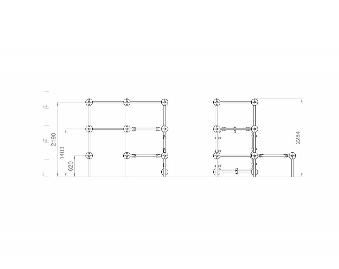 Состоит из металлического каркаса и пластиковых панелей. Предназначен для занятий паркуром и отработки гимнастических упражнений.