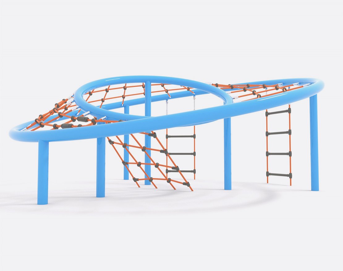 Канатная конструкция серии UFO. Состоит из металлического каркаса и канатной сетки. Имеет круглую форму. Сетка имеет разную силу натяжения по всей конструкции. Сетка оснащена подвесными лестницами и пластиковыми уступами. Рассчитана для массовых игр, подходит для развития координации движений.