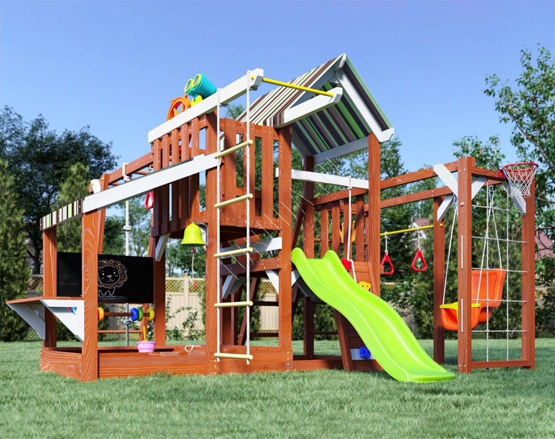 Площадка Борге 14 обладает довольно широким функционалом (который по желанию можно легко расширить). Детская площадка предназначена для дачи, коттеджа.
