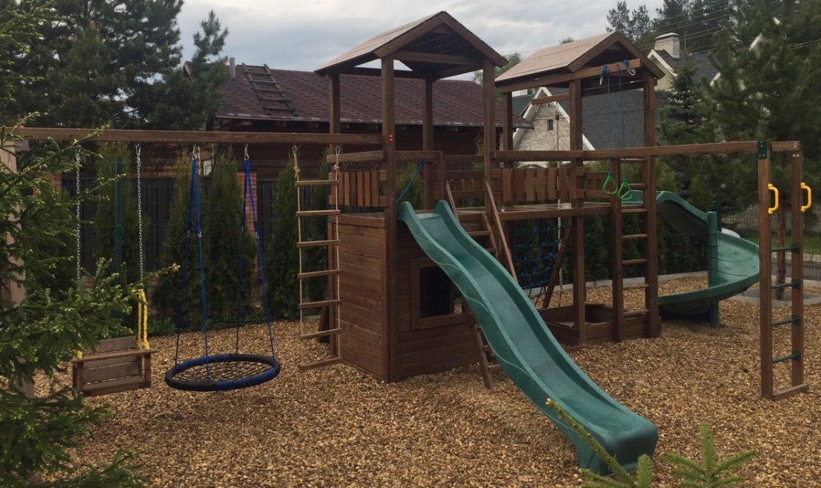 Надежная и долговечная детская игровая - спортивная конструкция из древесины сибирской лиственницы для детской площадки в дачных домовладениях, загородных участках и поместьях (только частные владения, для личного пользования), поможет организовать интересный досуг детям в условиях загородной жизни и отлично сочетается с природным ландшафтом. Конструкция не предназначена для установки и эксплуатации в зонах общего пользования: городские дворы, городские парки, общедоступные детские игровые площадки.