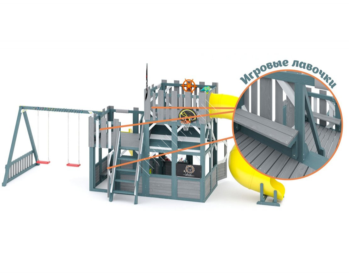 - Двухуровневая конструкция превращает площадку в увлекательный лабиринт с множеством маршрутов для исследования.