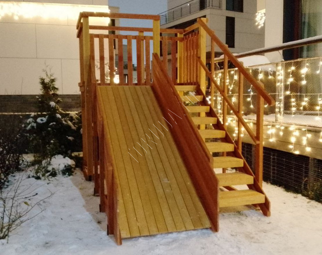 Зимняя горка имеет Декларацию о соответствии ТР ЕАЭС 038 и может быть использована в общественных местах.