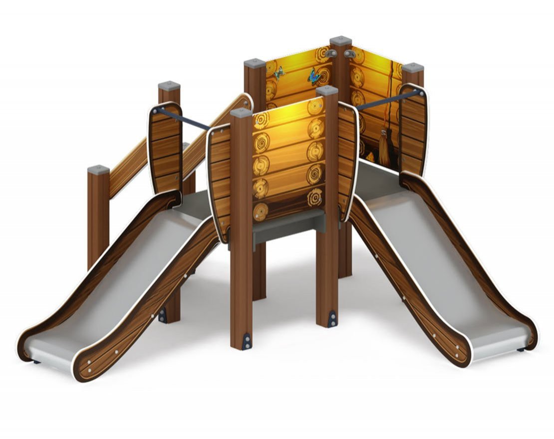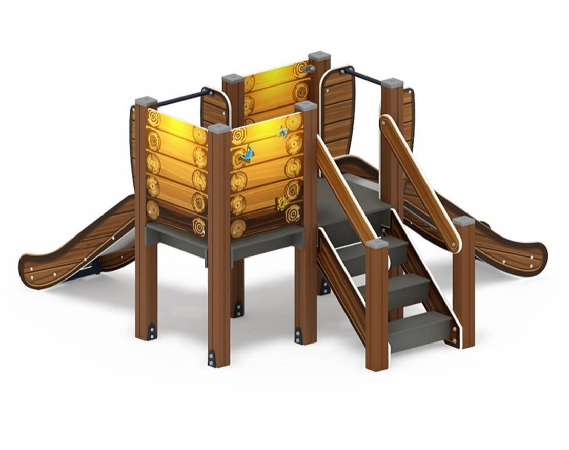Спаренная башня из шести клеёных брусьев 100х100 мм высота 1500 мм; полы из ламинированной фанеры, с анти-скользящим покрытием 780х1460мм толщиной 18 мм. Башня без крыши. Кромки фанеры тщательно шлифованы.