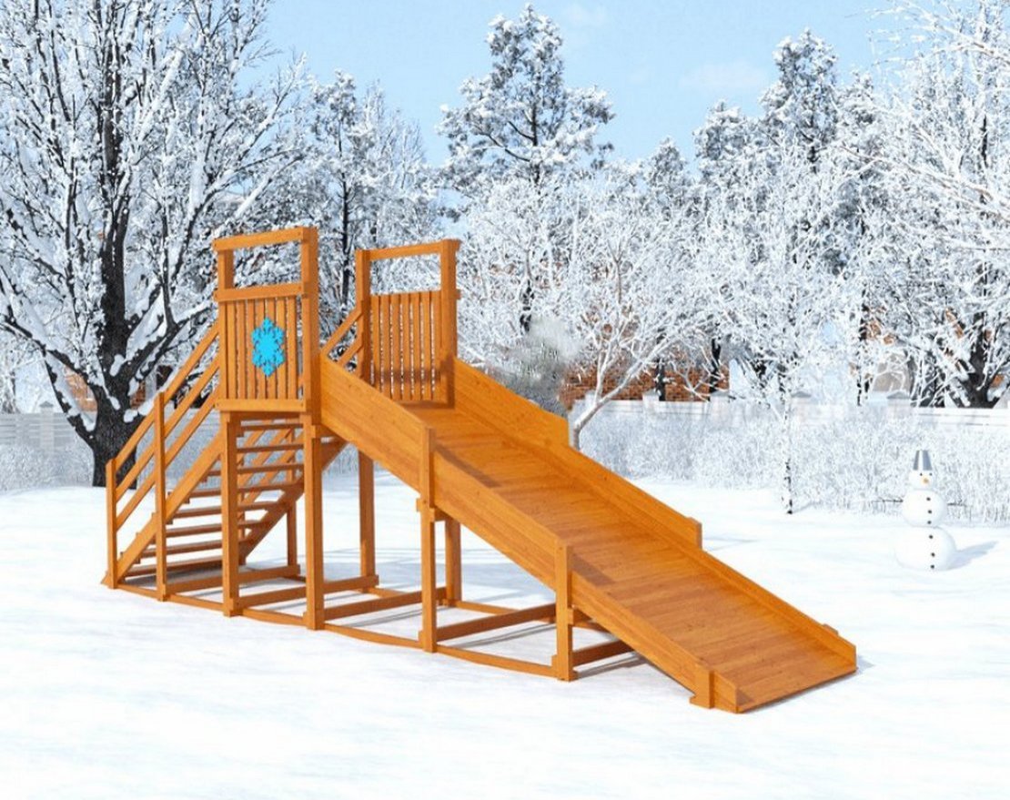 Даже ребята дошкольного возраста смогут самостоятельно взобраться наверх по ступенькам, держась за перила. Небольшая площадка в верхней части позволит детишкам удобно расположиться на ледянке или саночках.
