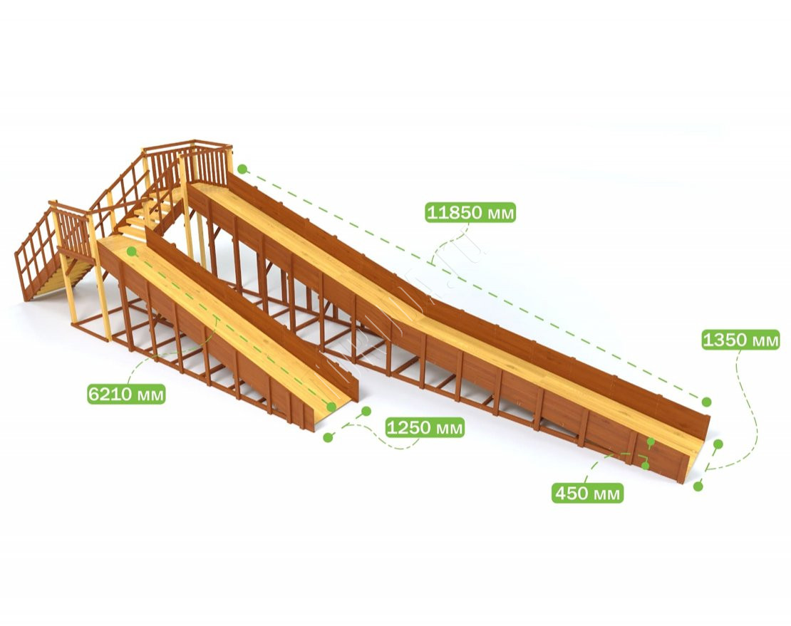 Уличная деревянная горка «TORUDA Север» - 9 предназначена для зимних развлечений. Этот игровой комплекс позволит детям разных возрастов весело и активно проводить время на свежем воздухе.
