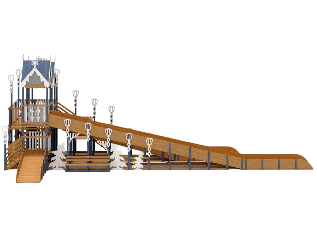Эта горка — идеальное воплощение зимней сказки, которое станет украшением парка или вашего участка в морозное время года. Удивительный дизайн с множеством декоративных элементов создадут атмосферу настоящего зимнего волшебства.