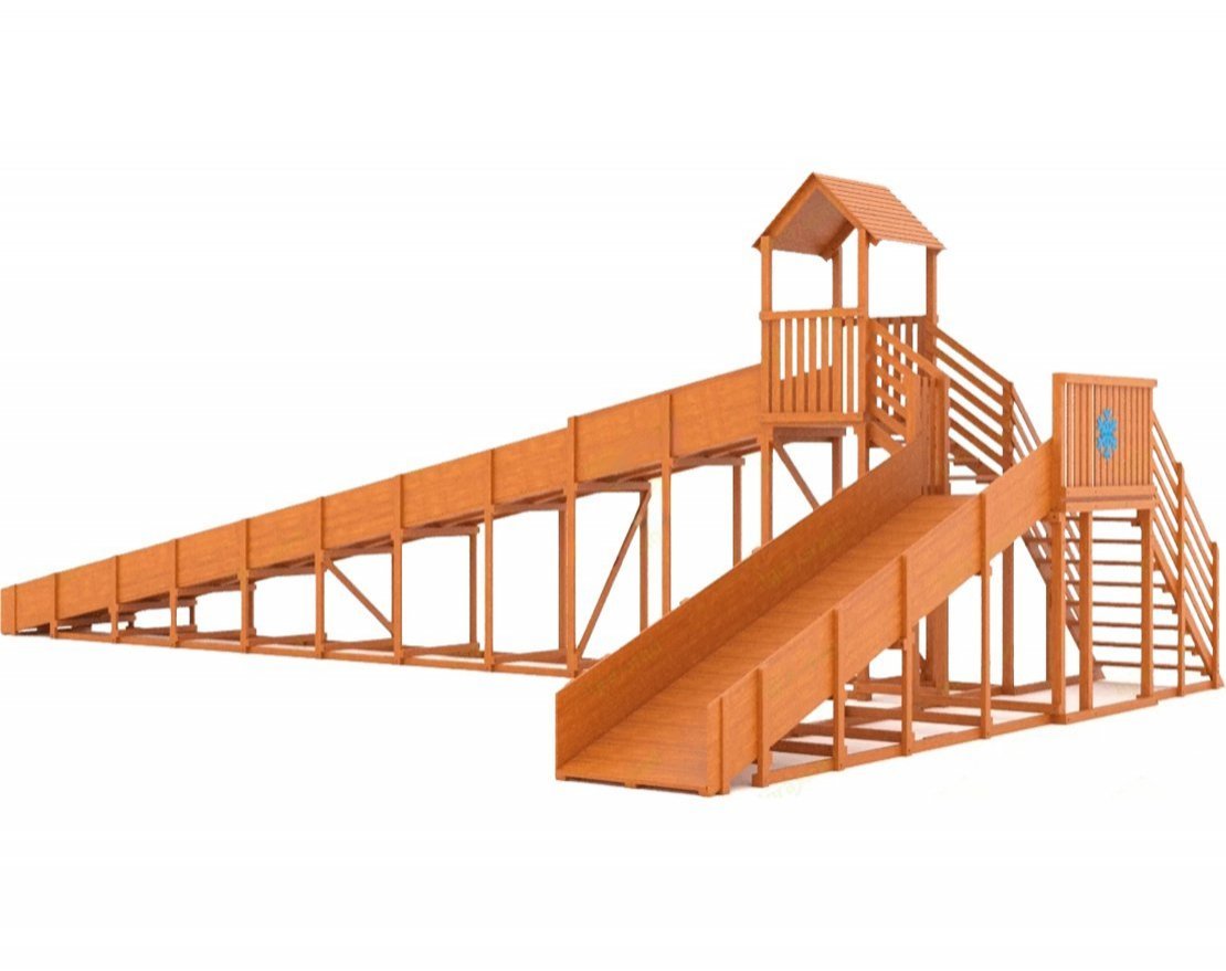 Зимняя деревянная горка с двумя скатами - это не только отличное развлечение для детей и взрослых, но и настоящее произведение искусства. Эта горка имеет два ската разной длины: один длиной 12 метров, а другой - 6 метров. Первый скат предназначен для более опытных и смелых любителей горок, которые готовы преодолеть более длинный путь. Второй скат, длиной в 6 метров, более подходит для детей и начинающих пользователей.