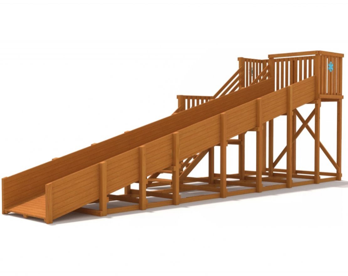 Детская заливная зимняя горка Snow Fox (скат 8 м) – несущая деревянная конструкция с усиливающими балками. Она имеет скат длиной 8,0 м, а шириной – 1,28 м. Скат достаточно просторный, поэтому ребятам будет удобно с него скатываться в объёмной тёплой одежде. Скат заливается холодной водой при минусовой температуре, после чего горка готова к эксплуатации.