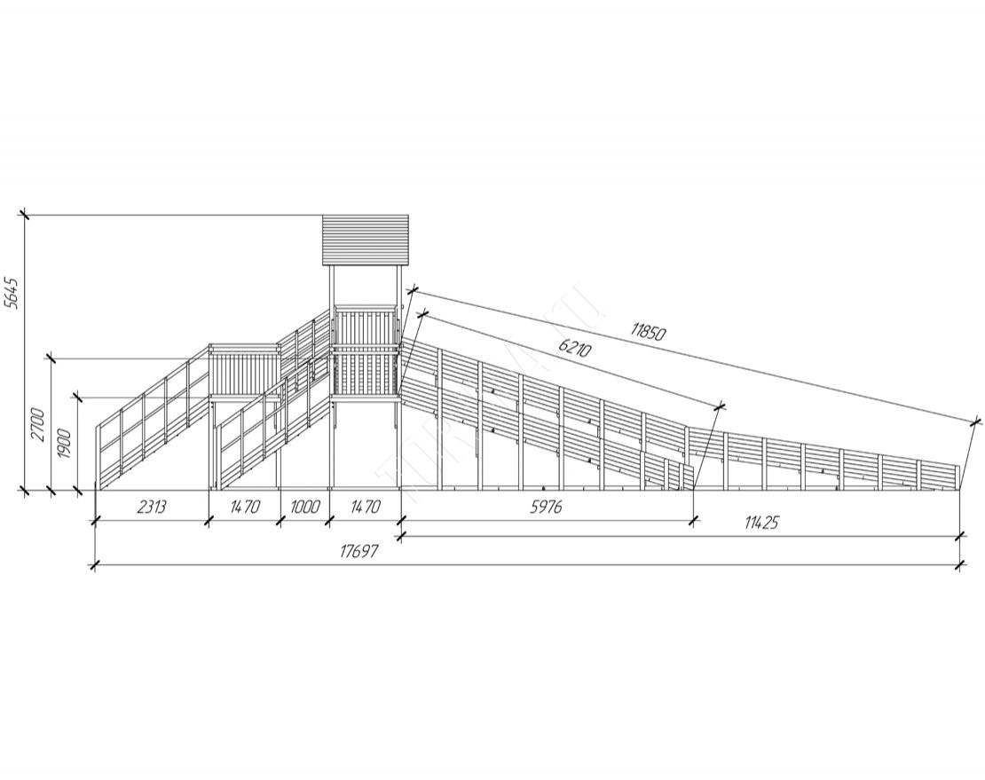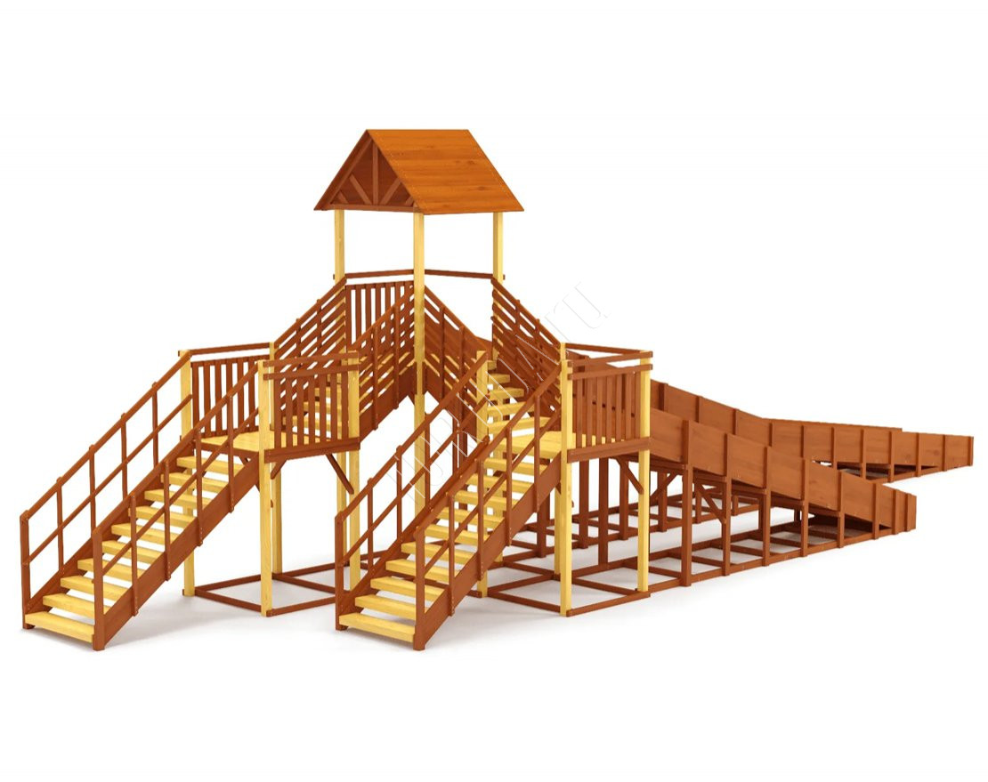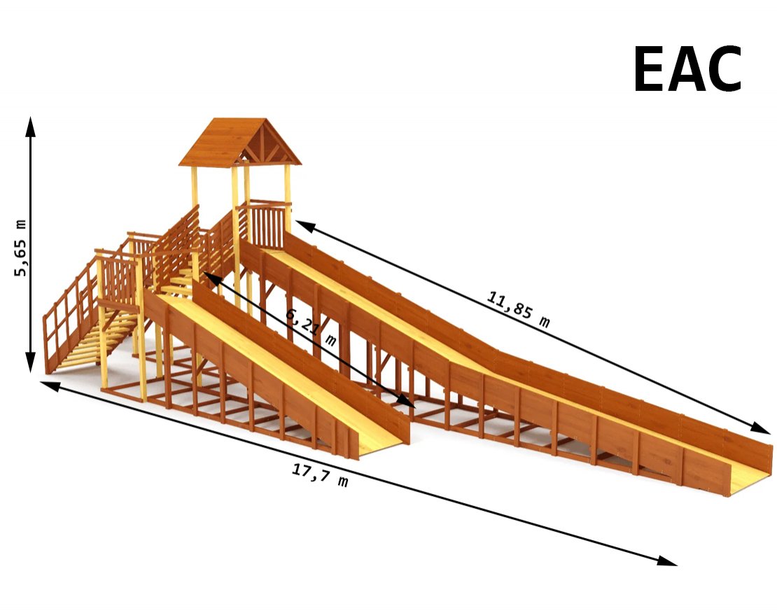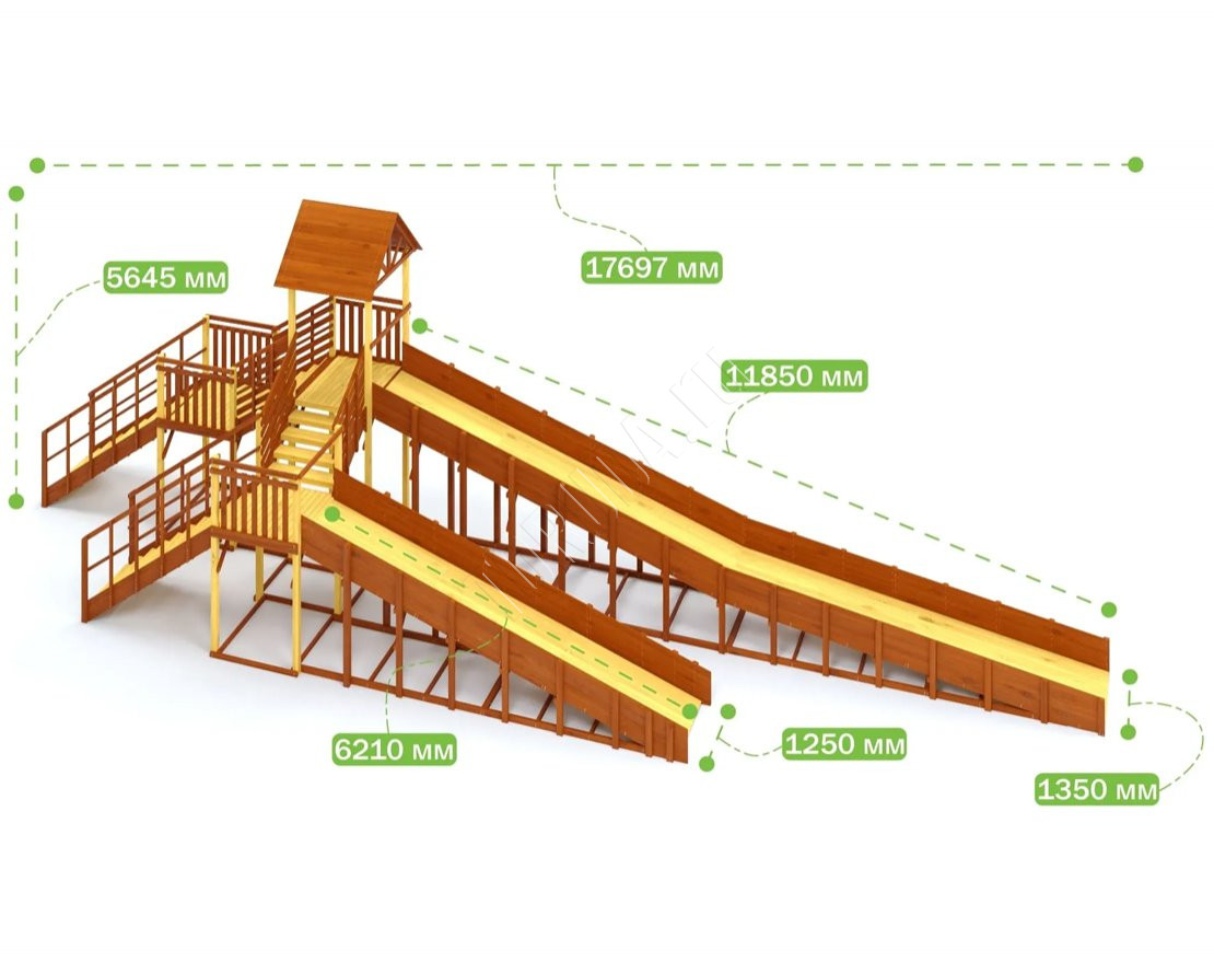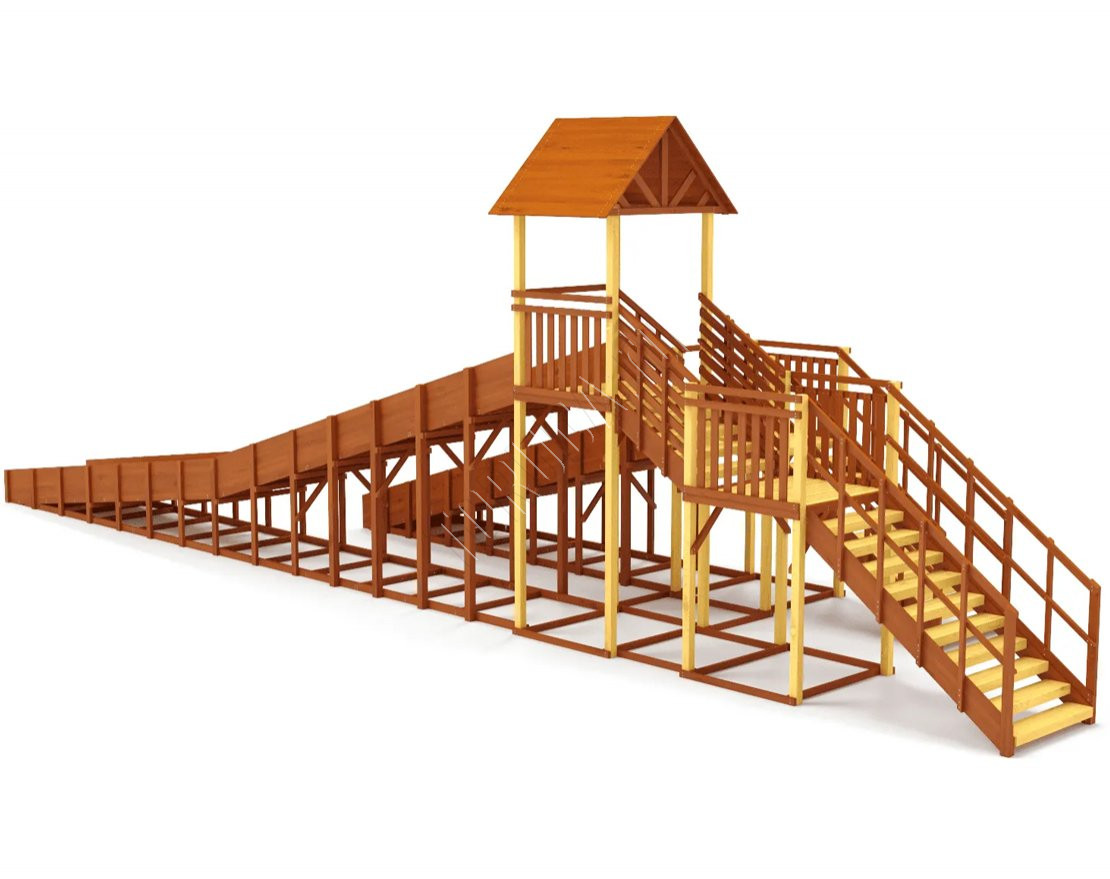 Многоуровневая зимняя горка с двумя длинными скатами (6,21 м и 11,85 м). Идеально подходит для активных игр, катания на тюбингах и ледянках. Благодаря прочной конструкции и широкой платформе, эта модель станет центром зимних развлечений во дворе, парке или общественном пространстве.