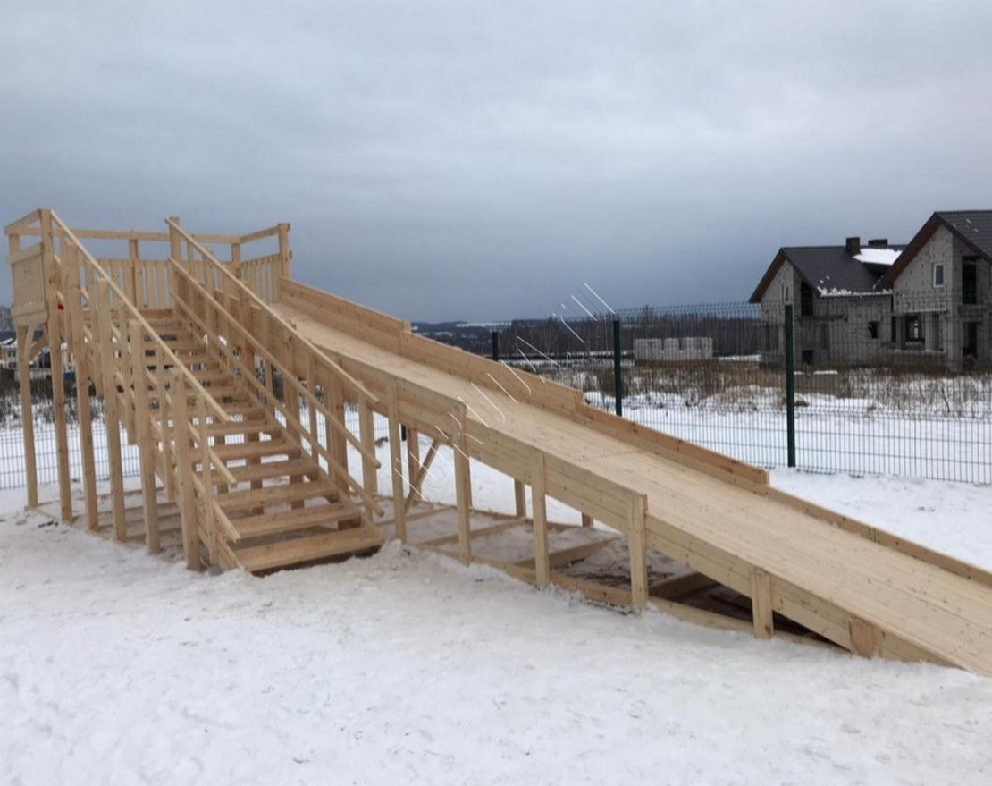 Универсальная деревянная зимняя горка «TORUDA Север Wood»-8 – модель с самым длинным скатом из зимней линейки без покраски (9 м). Её каркас сделан из клееного бруса. Он устойчив к влажности, морозу, перепадам температуры, что делает игровой комплекс всепогодным и всесезонным. Также он обладает высокой прочностью, сохраняет геометрию в процессе эксплуатации.