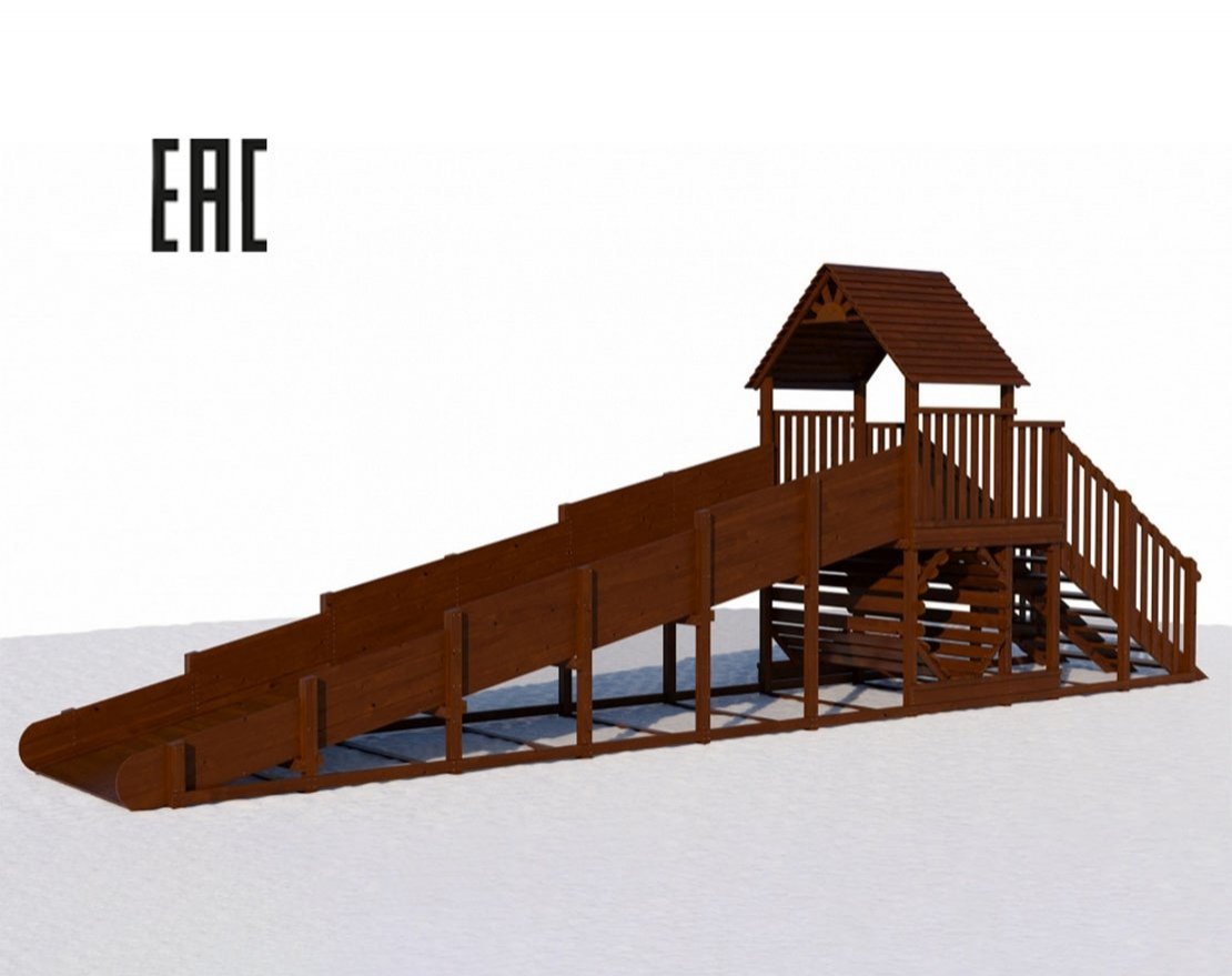 Конструкция горки выполнена из высококачественной древесины, что делает ее прочной и долговечной.
