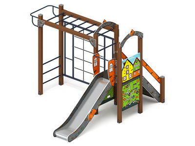 • Особенности комплектации: турник, рукоход, гладиаторская сетка, горка, скалодром, лестница