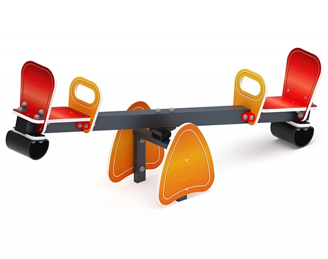 Опора балансира выполнена из профильной трубы квадратного сечения 60х30 мм, а так же скобы крепления, двойной втулки и двух подшипников, окрашена порошковой краской в графитово-серый цвет. Металл имеет плавные радиусы и тщательную обработку швов. На опору балансира крепятся борта качалки, выполненные из влагостойкой фанеры толщиной не менее 18 мм. Борта качалки (2шт.) окрашены в желтый цвет. Габаритные размеры: 370х400х735 мм.