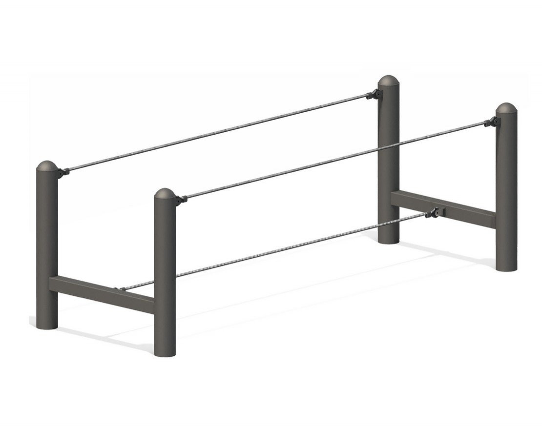Канат для детских игровых площадок состоит из 6-ти прядей и стального сердечника. Каждая прядь выполнена из металлической сердцевины (канатная оцинкованная проволока) с обмоткой из синтетического материала, что обеспечивает яркие и насыщенные цвета.