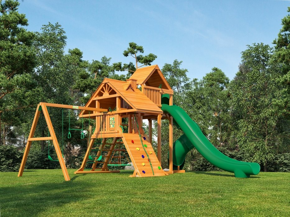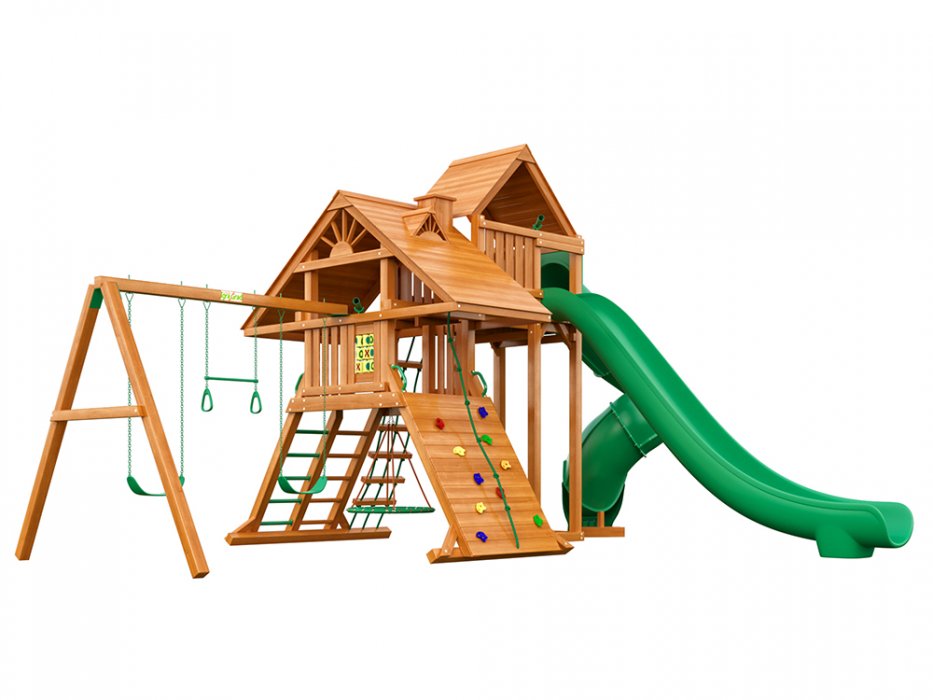 Детская площадка Крепость Deluxe 3 с деревянной крышей, превратит любой двор в самое веселое место. С этой площадкой не будет скучно, ведь на ней могут развлекаться много детей. Каждый найдет по вкусу себе развлечение. На этой площадке установлено практически все для развлечения: 2 горки, Волновая и Горка труба, установка на целых 2,1 метра, не даст заскучать маленьким покорителем вершин.