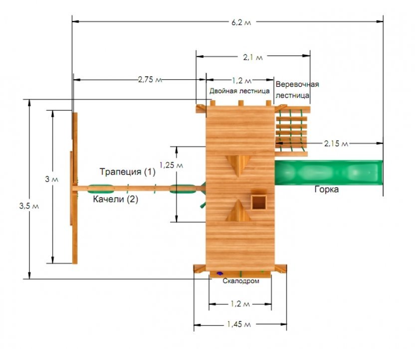 Габариты игрового комплекса составляют: