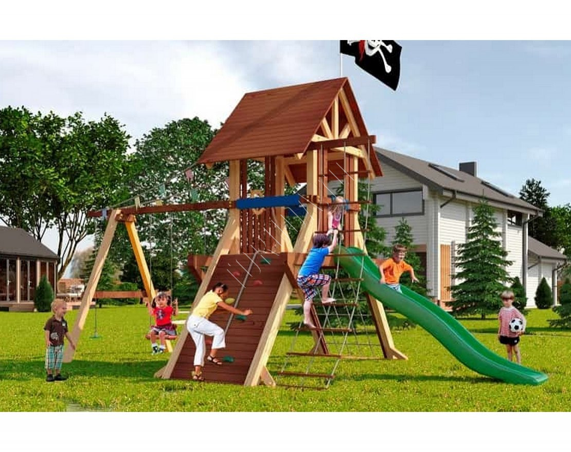 Площадка Галиот 1 обладает довольно широким функционалом (который по желанию можно легко расширить). А на качелях могут кататься даже родители! Детская площадка предназначена для дачи, коттеджа.