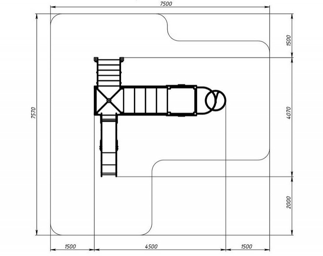 • Зона безопасности: 7570х7500 мм;