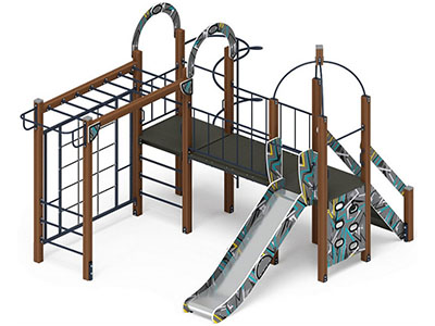 • Особенности комплектации: турник, рукоход, гладиаторская сетка, горка, скалодром, лестница