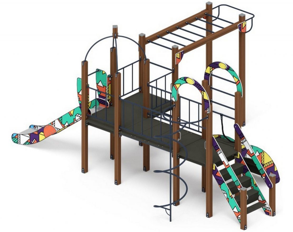 • Особенности комплектации: канат, турник, рукоход, гладиаторская сетка, горка, лестница