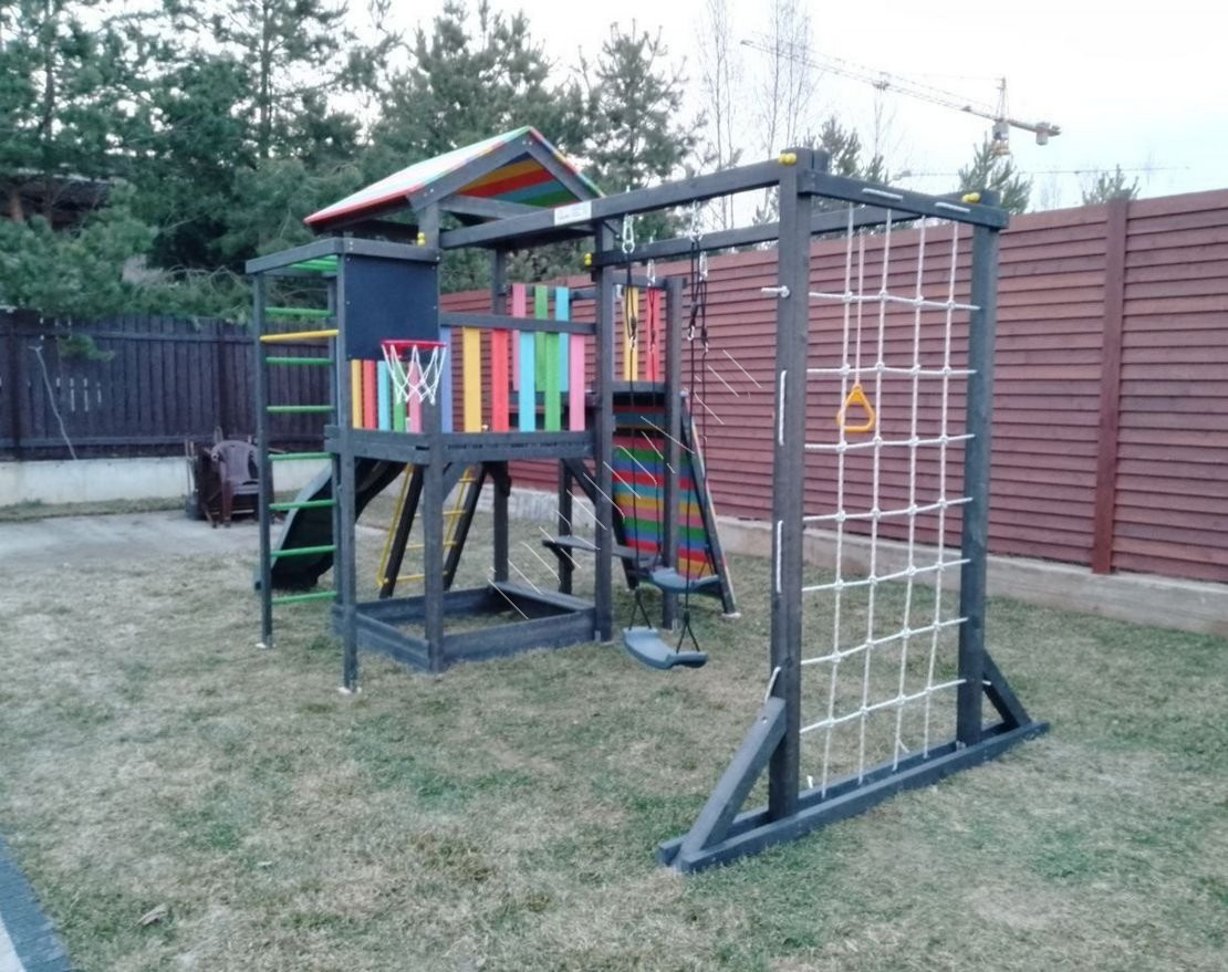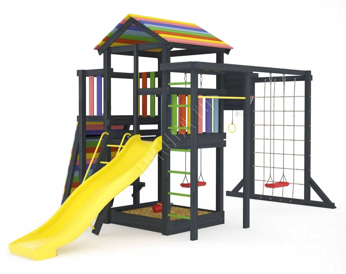Детская площадка обладает довольно широким функционалом, предназначена для дачи, коттеджа.