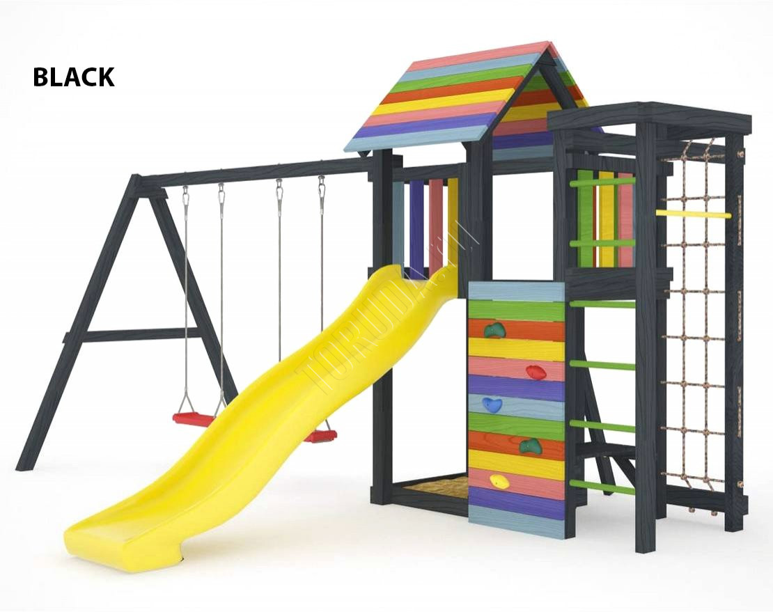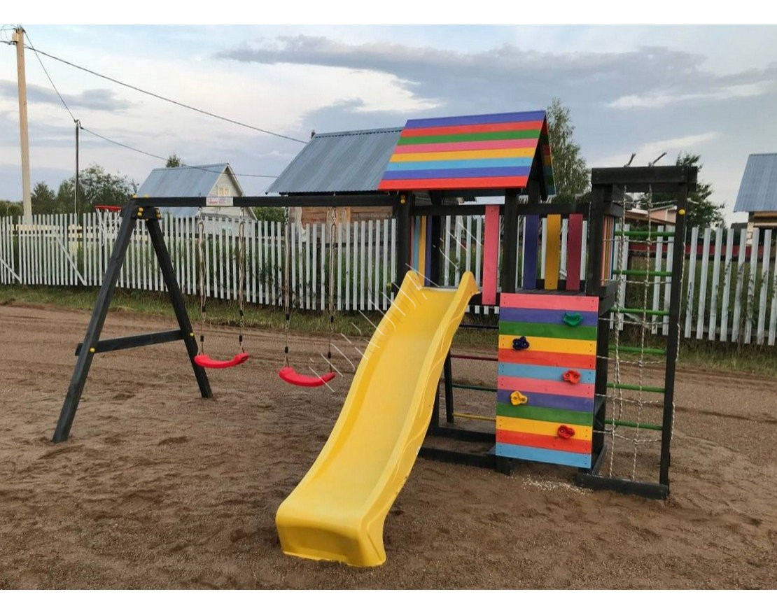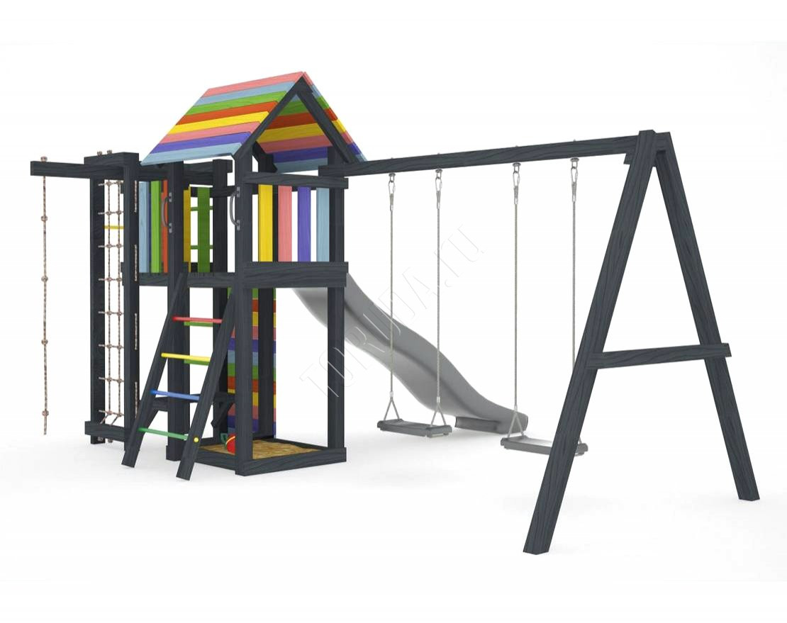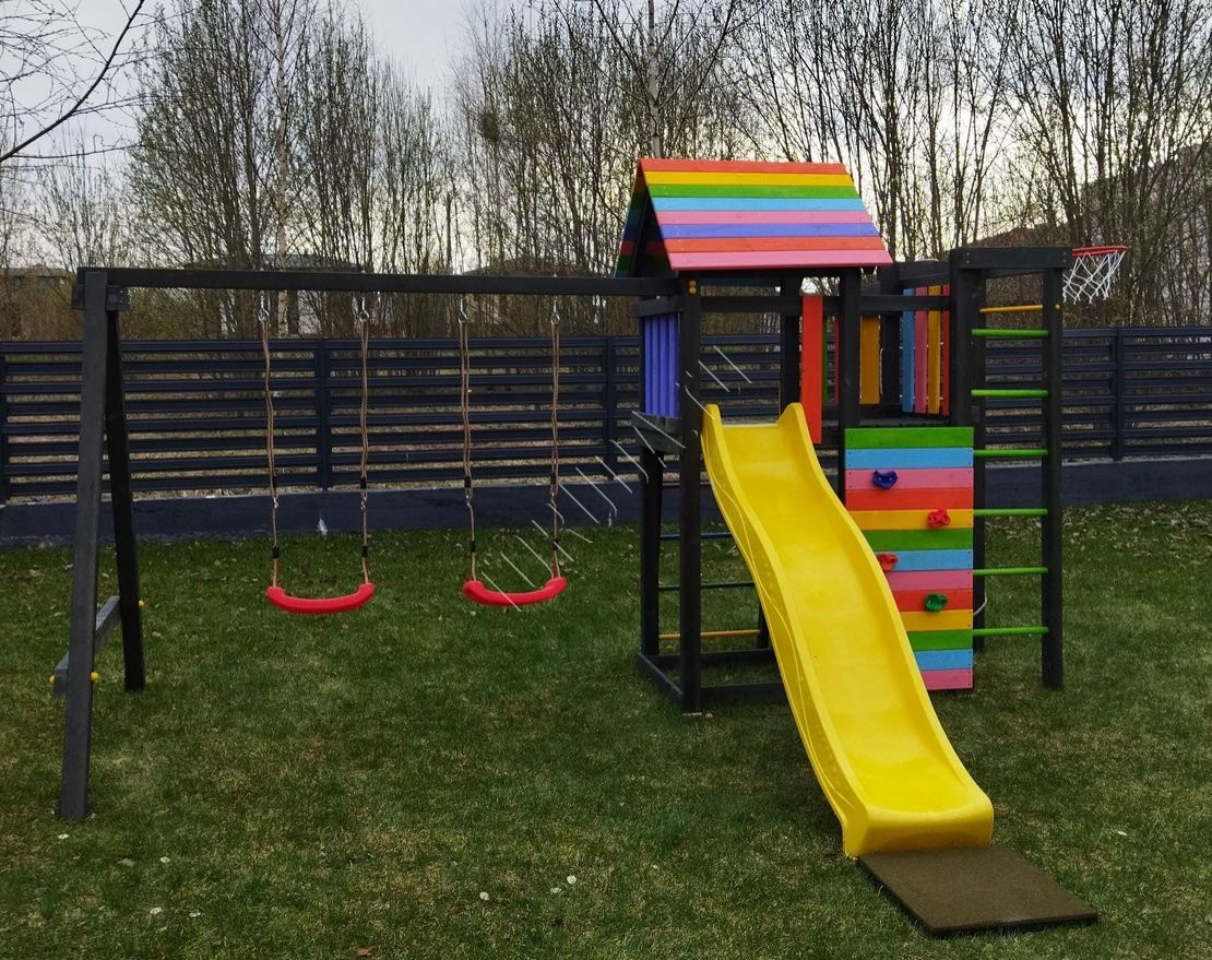 Детская площадка обладает довольно широким функционалом, предназначена для дачи, коттеджа.