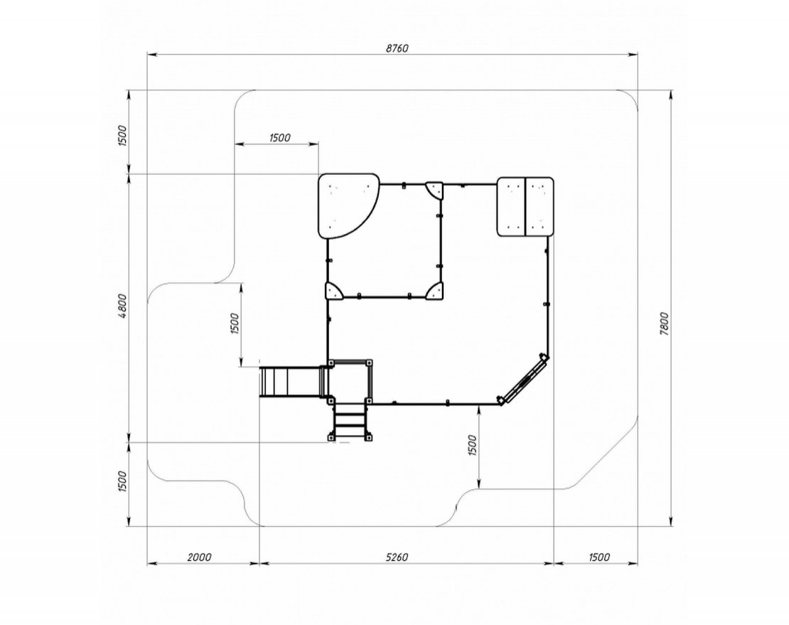 В целях безопасности все отдельно выступающие детали и резьбовые соединения закрыты пластиковыми колпачками. Края болтов закрыты пластиковыми заглушками. Закладные детали опорных стоек имеют двойное порошковое окрашивание.