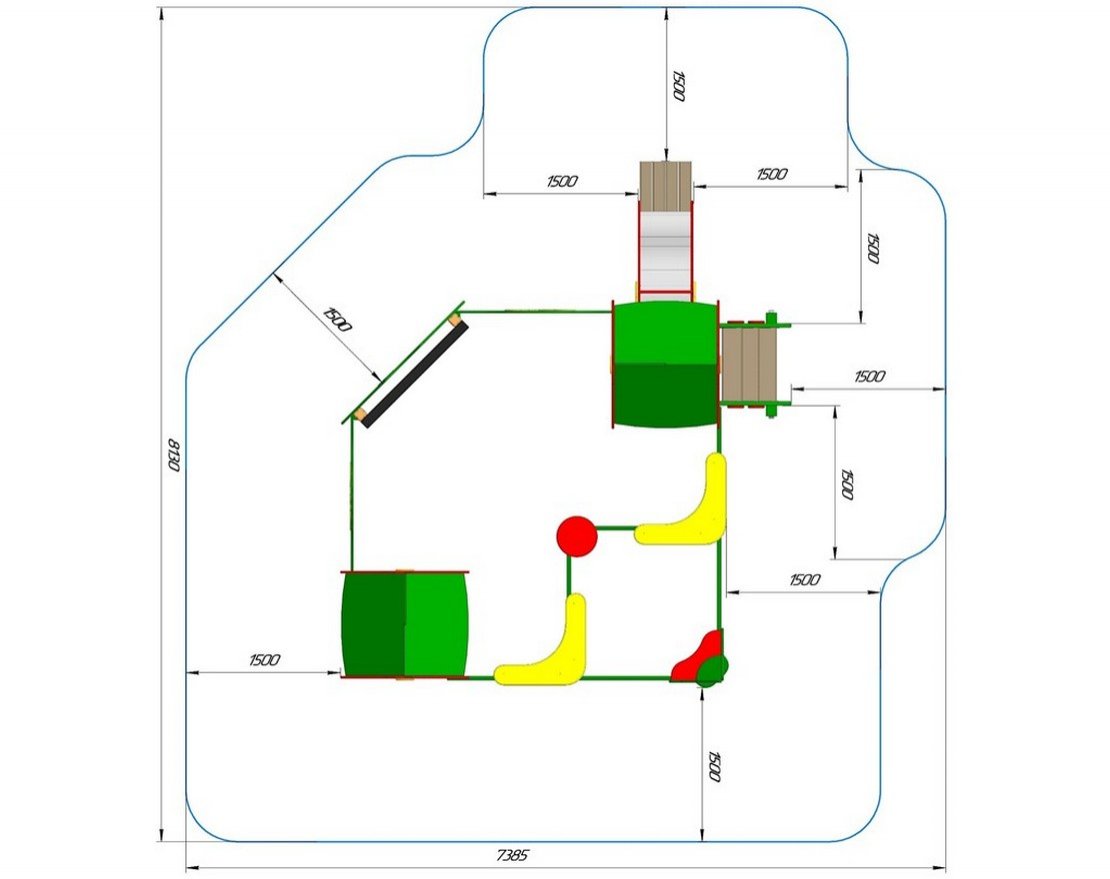 • Занимаемая площадь с учетом зон безопасности и приземления: 8130 × 7385 мм