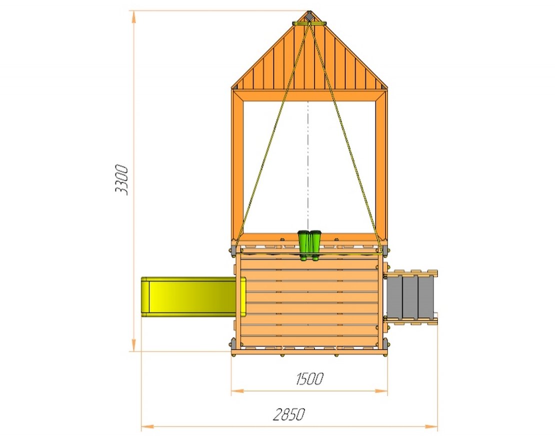 Габариты комплекса: 3300 мм х 1500 мм х 2100 мм.