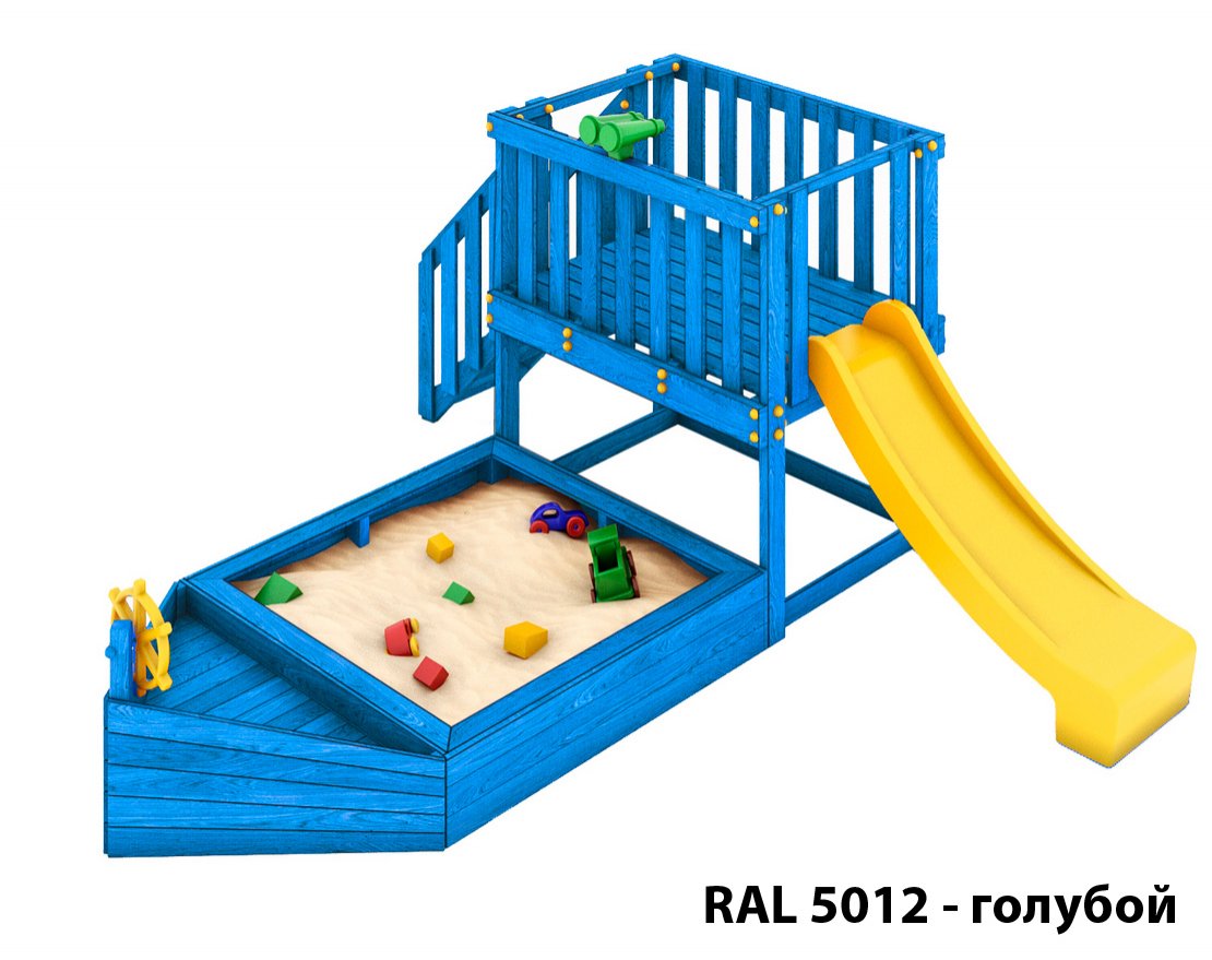 Детская песочница-кораблик и капитанский мостик с горкой с высоты 900 мм.