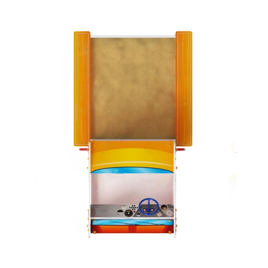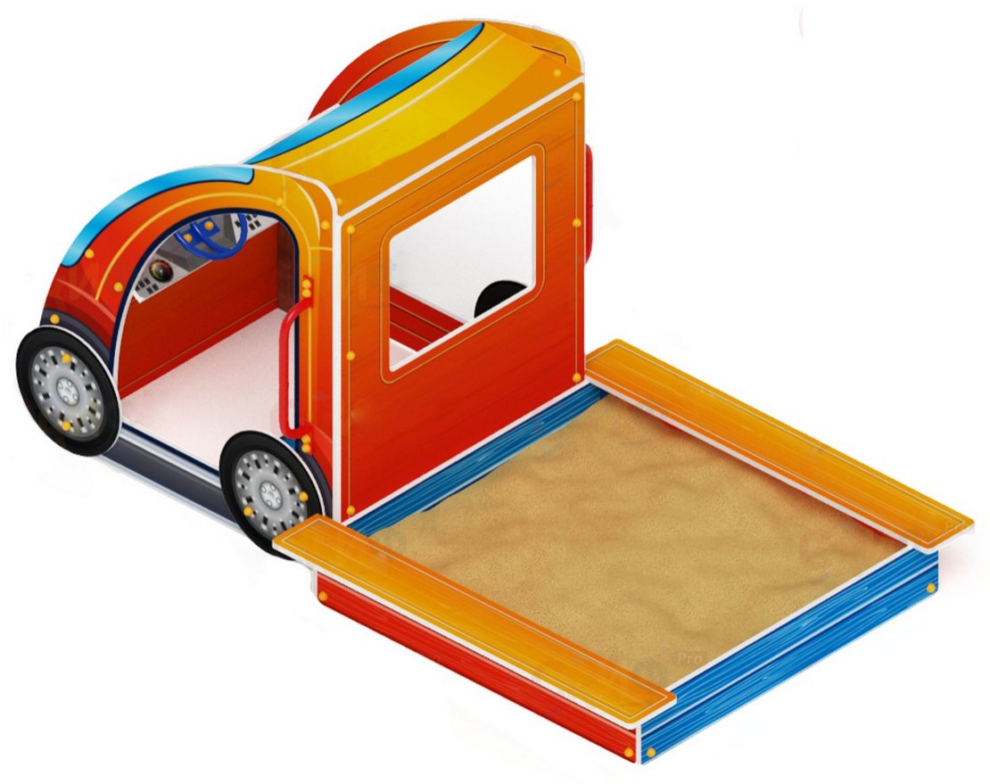 Выполнены из влагостойкой фанеры толщиной не менее 21 мм, кромки фанеры тщательно шлифованы. Борта песочницы: 1220х200 мм – 4 шт., окрашены в красный и синий цвет. Борта стилизованные под грузовичок выполнены из фанеры толщиной не менее 18 мм: 1300х1150 мм – 2 шт, 100х350 мм – 1 шт, 1000х1200 мм -1шт, 1000х400 мм – 1 шт. Все элементы окрашены с нанесением рисунка.