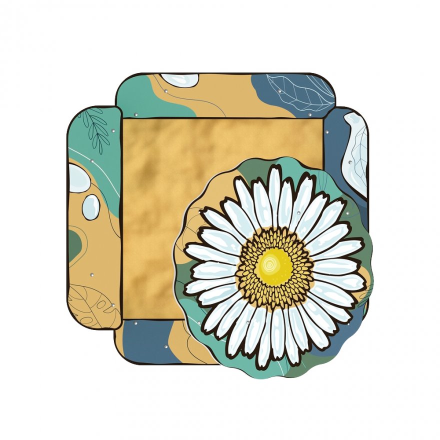 Выполнен из влагостойкой фанеры толщиной не менее 18 мм, кромки фанеры тщательно шлифованы, окрашен с нанесением рисунка (Цветок). Размер 1180х1180.