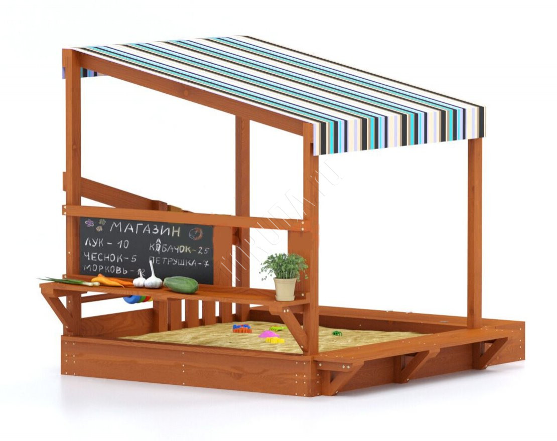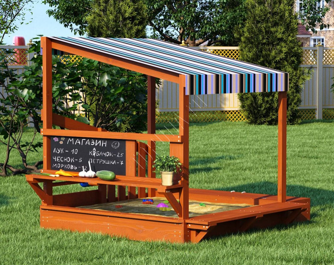 - Песочница – это отдельный элемент, который позволяет детям играть в песке и строить замки и башни. Лавочки на песочнице обеспечивают удобство и комфорт при игре.