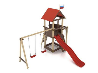 Для максимальной защиты ребёнка от травм, все углы имеют закруглённую форму, крепеж надежно скрыт пластиковыми заглушками. Опоры изготовлены из клееного бруса толщиной 90*90 мм.