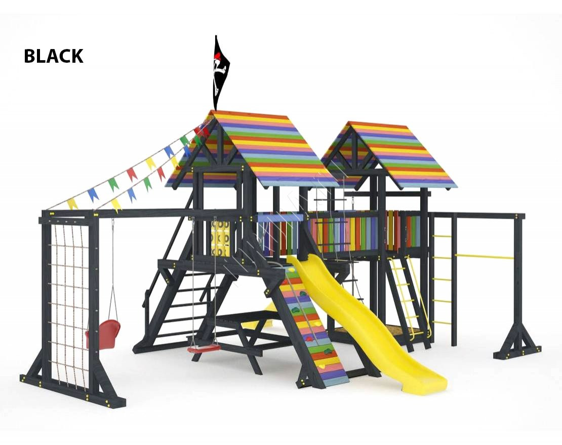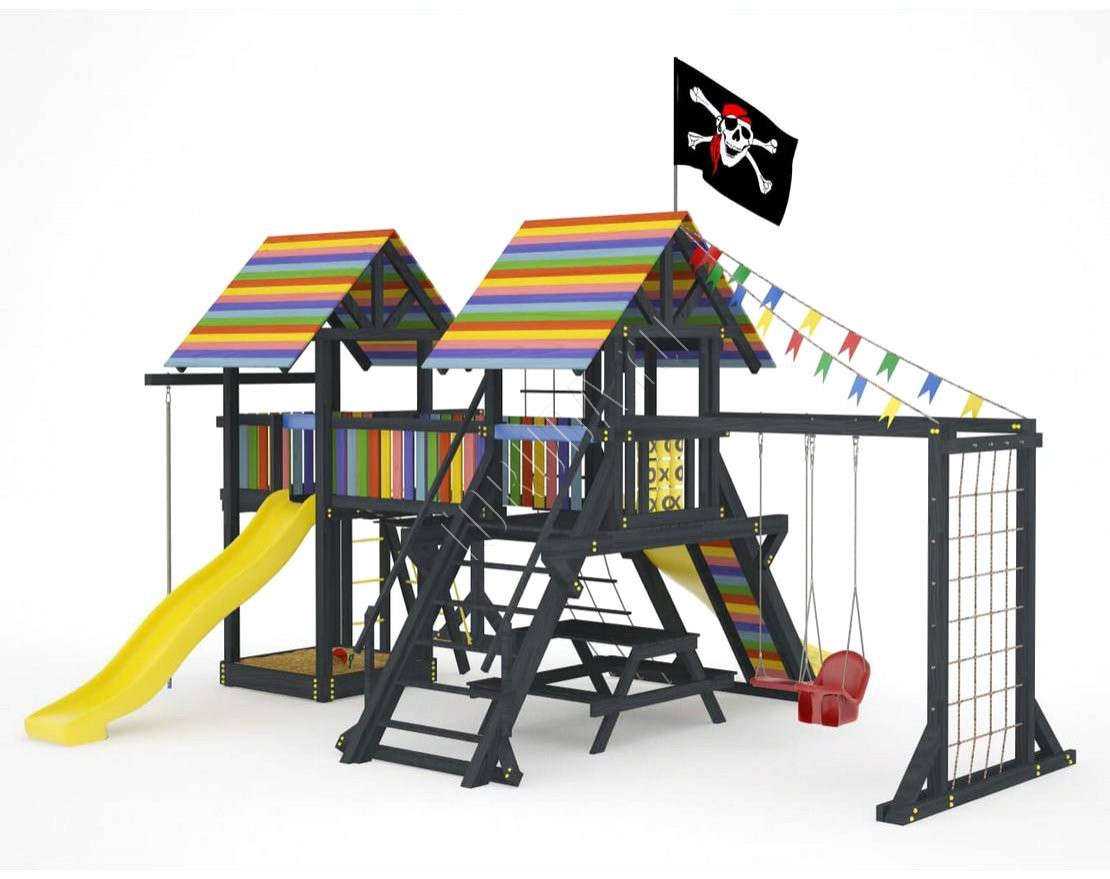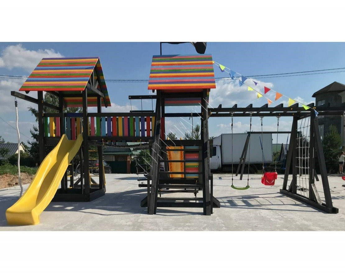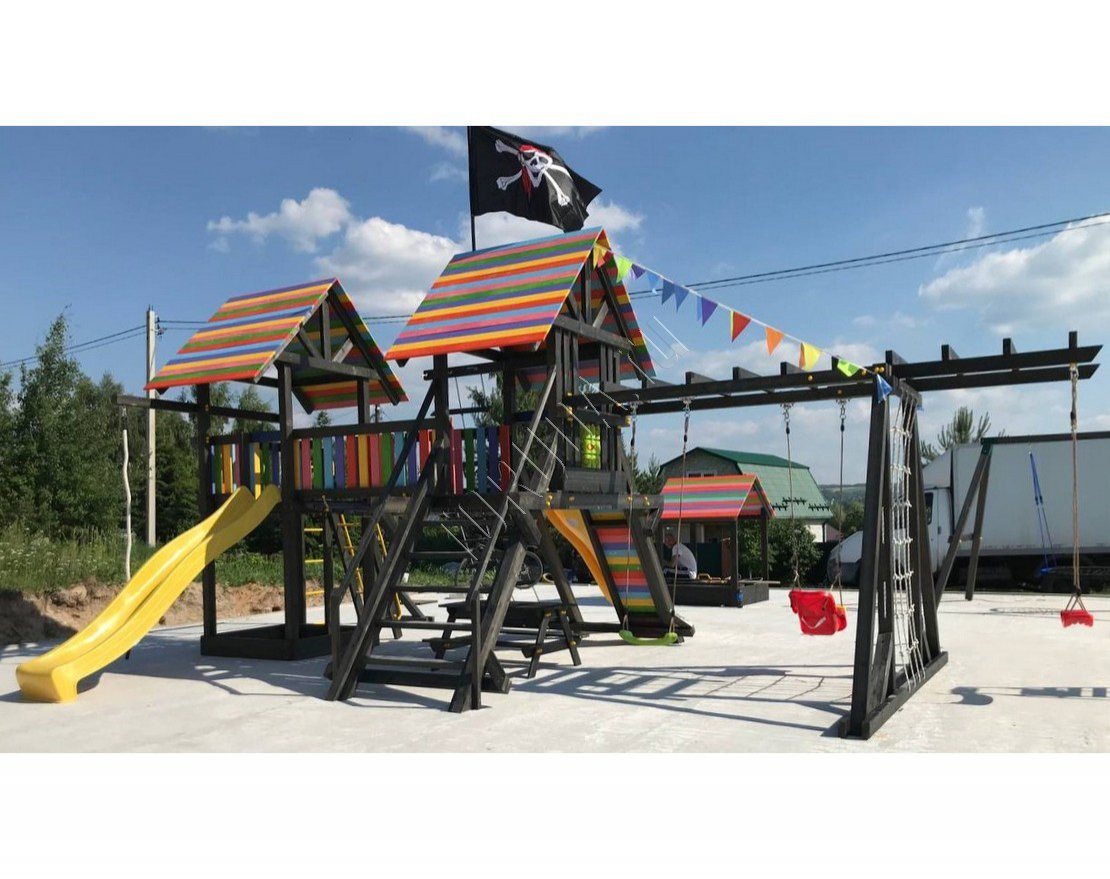 Детская площадка обладает довольно широким функционалом, предназначена для дачи, коттеджа.