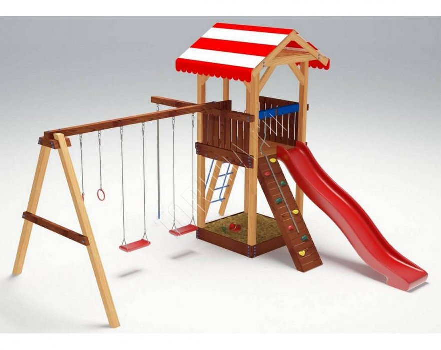 Площадка Парус 1 обладает довольно широким функционалом (который по желанию можно легко расширить). Детская площадка предназначена для дачи, коттеджа.