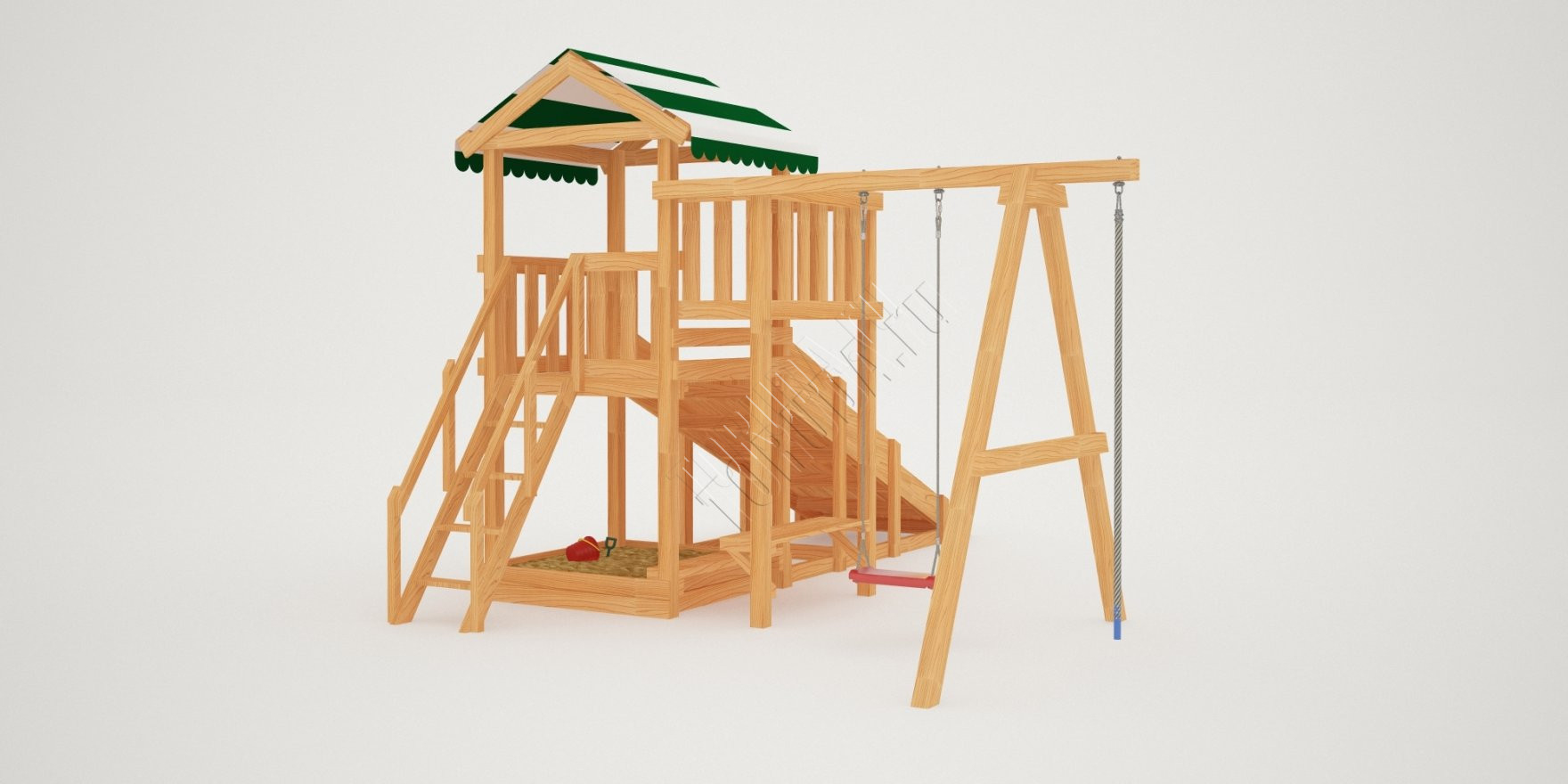 Всесезонная модель Гарда 1 обладает натуральным цветом дерева без покрытия и модульной конструкцией. Одновременно на площадке могут играть несколько детей. Основа конструкции – игровая башня с балкончиком и яркой пластиковой горкой.