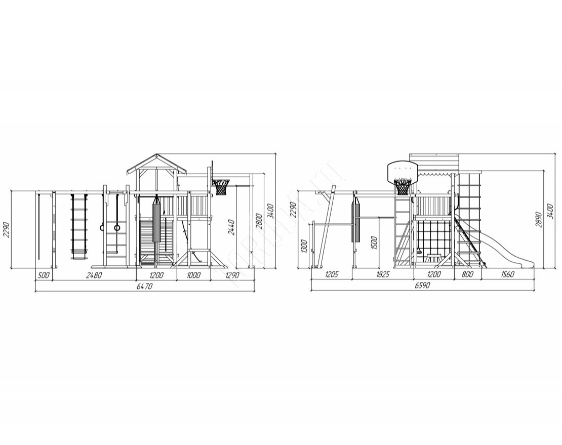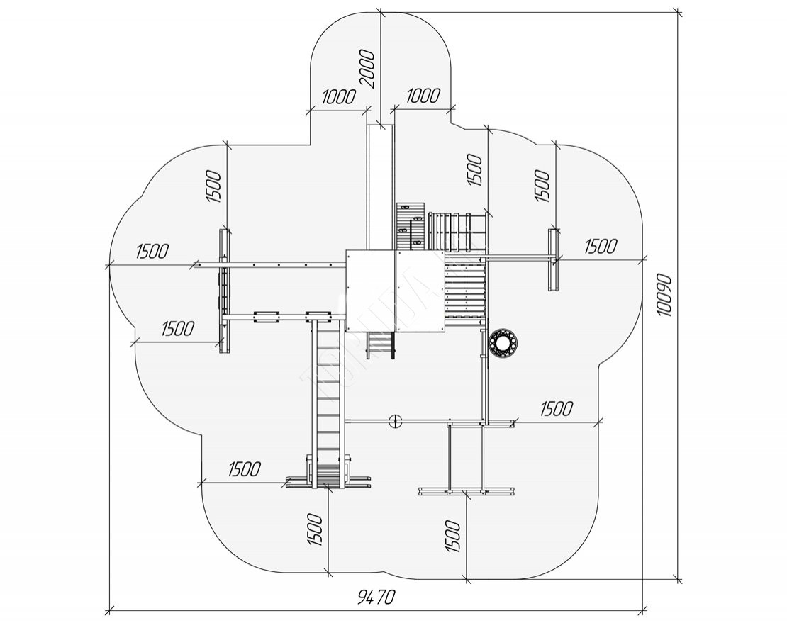 - Игровая башня (высота 3,4 м) с тканевой крышей – 1 шт.