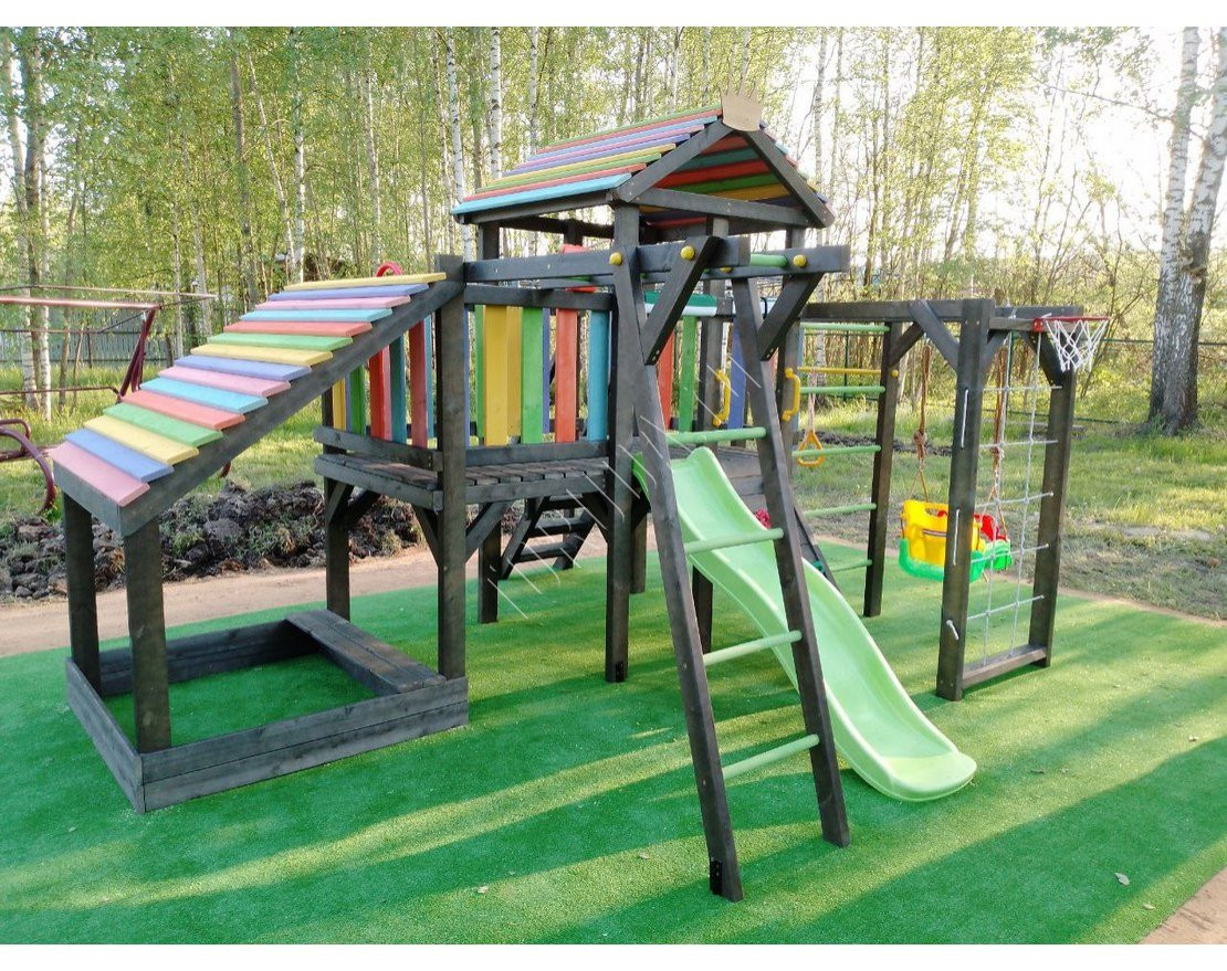 Детская площадка обладает довольно широким функционалом, предназначена для дачи, коттеджа.