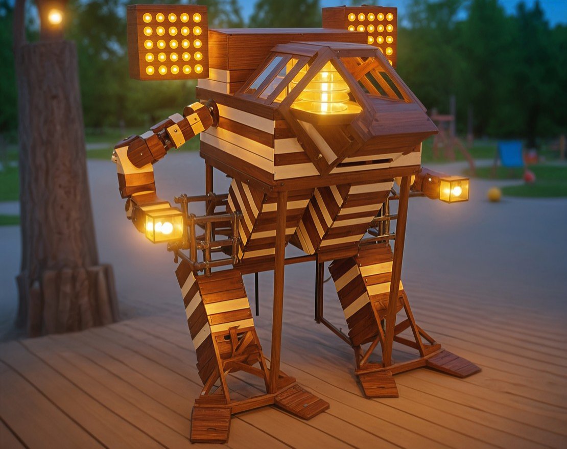 Каркас изделия изготовлен из сибирской лиственницы. Все элементы тщательно отшлифованы и покрыты двумя слоями немецкой краски Biofa. Для крепления элементов используется уникальная скрытая система монтажа Camo, которая делает поверхность полностью безопасной и эстетичной.