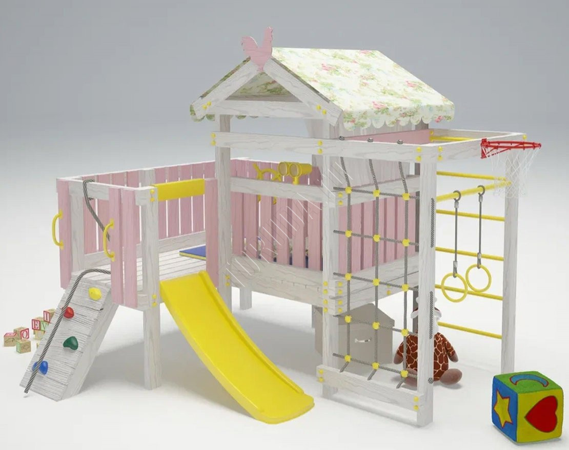 Для будущих альпинистов есть сетка-лазалка и шведская стенка - лазая по ним, ребёнок укрепляет мышцы, тренирует связки и ловкость. Для атлетов предусмотрены детские гимнастические кольца, а для будущих звезд командного спорта – баскетбольная корзина. Она поможет превратить детскую в небольшой зал и провести турнир по баскетболу.