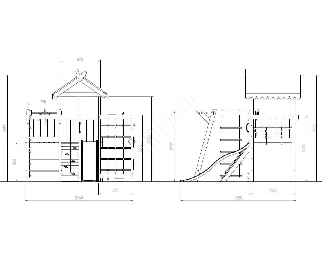 Элементы конструкции гладкие, углы скруглены — риск получения травм сведён к минимуму. Комплекс выглядит аккуратно и эстетично.
