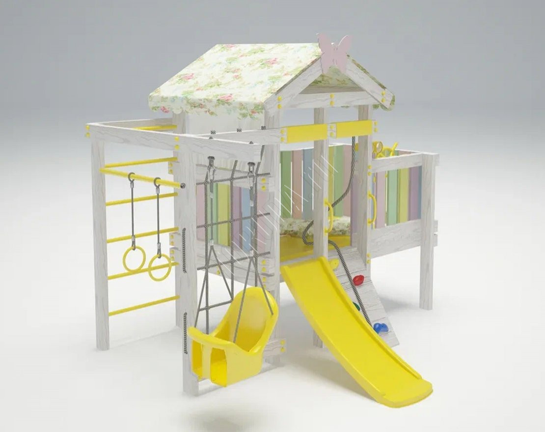 Родители могут оставлять в комплексе даже самых маленьких ребят, не волнуясь за их безопасность. Конструкция выполнена из натуральной древесины, все детали произведены согласно требованиям ГОСТа.